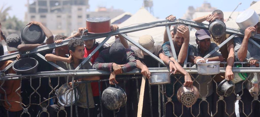 Abantu bategereza ibiryo mu gikoni rusange mu mujyi wa Gaza