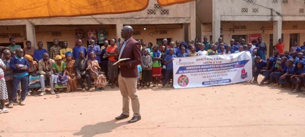 Umuhuzabikorwa w’imishinga iterwa inkunga na Compassion international mu karere ka Rusizi, Uwintije Jean Damascène atanga impanuro ku bitabiriye ubu bukangurambaga