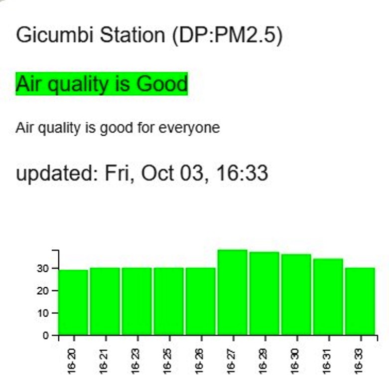 Iyo indangagaciro iri hagati ya 0 na 50, umwuka ushyirwa mubyiza kandi ukerekanwa mu cyatsi, bivuze ko ubuziranenge bushimishije kandi butera ingaruka nke cyangwa ntakibazo. Kurugero, ku ya 3 Ukwakira saa 16h33, Sitasiyo ya Gicumbi yanditse AQI ya 31, yafatwaga nk’ubuzima bwiza kandi ifite umutekano kuri buri wese.