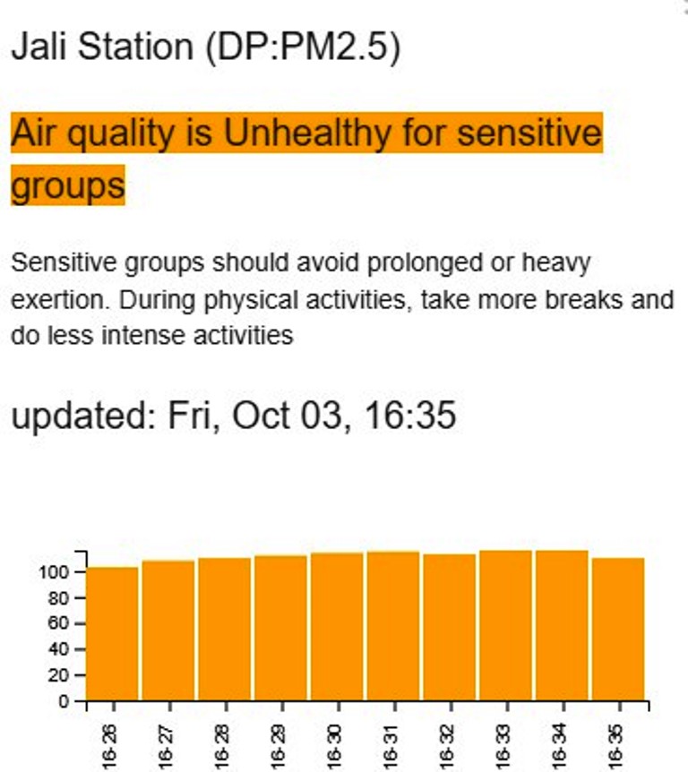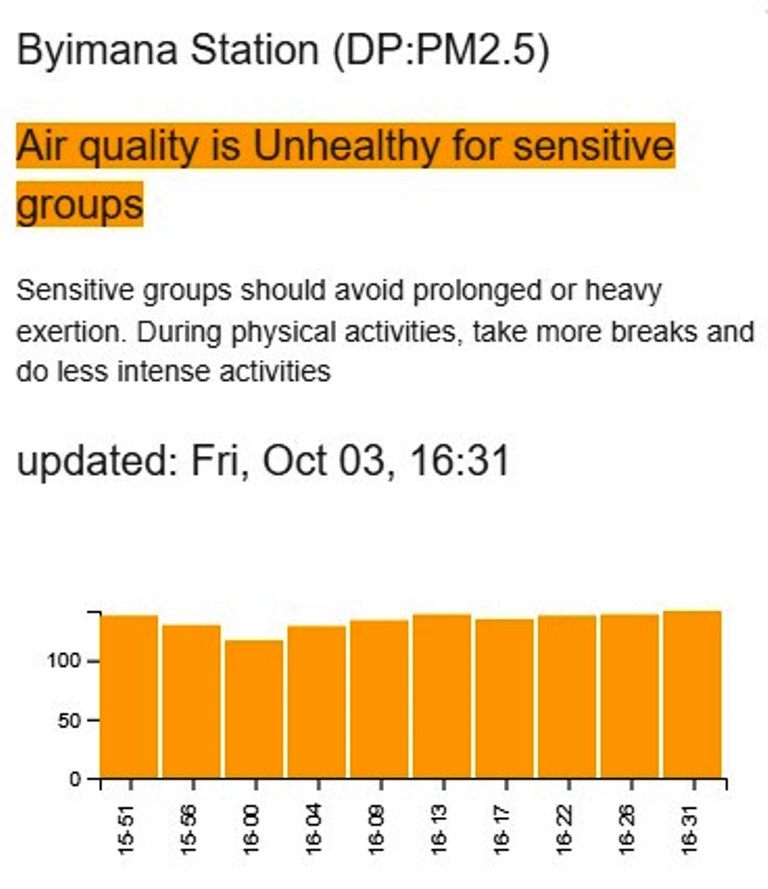 Kuri Sitasiyo ya Byimana, urugero, indangagaciro yari 149 ku ya 3 Ukwakira saa 16:31, bivuze ko amatsinda yoroheje ndetse n’abaturage benshi basabwe kugabanya ibikorwa bikomeye hanze.