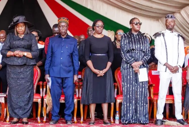 Abagize umuryango wa Raila Odinga bazengurutse isanduku ye mu gihe cyo gushyingura JOOUST