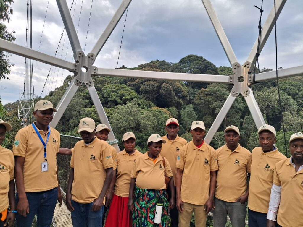 Abayobozi 450 mu nzego z’ibanze guhera kuri komite iyobora umudugudu kugera ku bakozi b’umurenge mu turere twa Rusizi, Nyamasheke, Karongi, Nyamagabe na Nyaruguru tubarizwamo pariki y’igihugu ya Nyungwe, bari kuyitemberamo aho batembera ku kiraro cyo mu bushorishori bwa Nyungwe cya Kanopi bavuga ko bishimiye cyane.